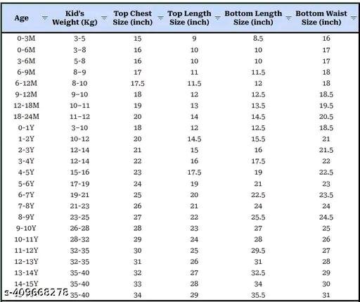 2-3 Years (Top Chest Size: 24.5 in, Top Length Size: 15 in, Bottom Waist Size: 24 in, Bottom Length Size: 11 in)